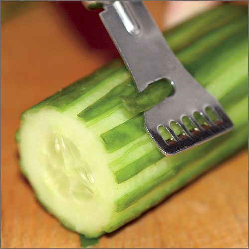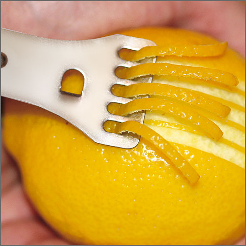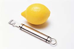 Rewelacyjny skrobak co cytrusów. Wykroisz nim cztery cienkie paseczki ze skórki cytryny, lub jeden grubszy.