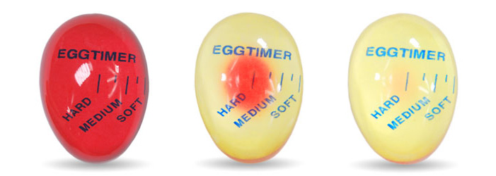 Żeby perfekcyjnie ugotować jajka, by były dokładnie takie jak lubimy, wystarczy dołożyć do nich minutnik - jajo, a ono zmieniając kolor, poinformuje nas o stopniu ich ugotowania.Jajo nie mierzy czasu, jak zwykły minutnik, ale pod wpływem temperatury zmienia kolor. Gdy na specjalnej podziałce ciemny kolor zbliża się do "soft" sygnalizuje, że jajka są na miękko, "medium" oznacza średnio ugotowane , "hard" natomiast , że są już na twardo.